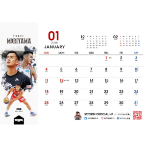 スリストム広島の選手たちの躍動感や表情を詰め込んだ、シンプルかつスタイリッシュな卓上カレンダー。