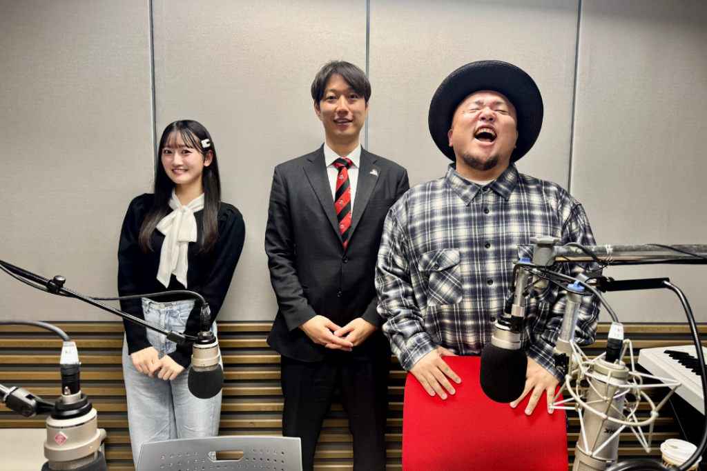 当日は、シンガーソングライターのHIPPYさん、STU48の信濃宙花さんのお二人がパーソナリティを務められ、終始あたたかく和やかな雰囲気の中でトークが進みました。HIPPYさんとは、2021年に呉市で開催されたスリストム広島の誘致大会にてオープニングパフォーマンスをしていただいたほか、代表の仲摩と坂田選手が、TEEさんとHIPPYさんの楽曲「きんさいや」のミュージックビデオに出演させていただいたご縁もあり、懐かしいお話も交えながら楽しい時間となりました。